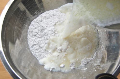…and pour it over the tapioca flour.
