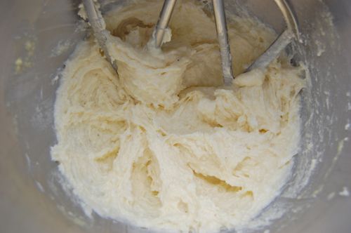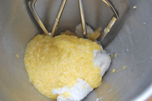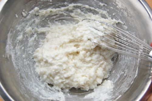When the tapioca mixture is cool, combine that and the cheese mixture in the bowl of a stand mixer fitted with a paddle (you can do the mixing by hand if you want, but a mixer will do it faster and more consistently…it will also incorporate more air).
