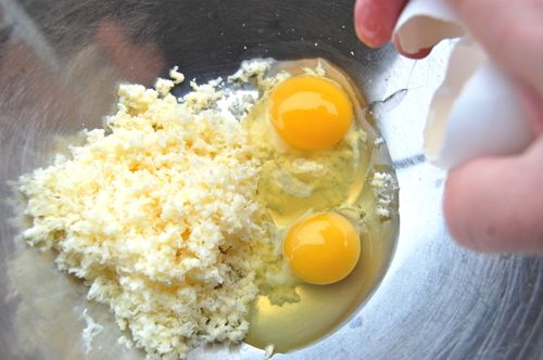 Meanwhile, whisk together the eggs and cheese.