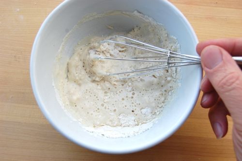 Begin the filling by combining the flour with about 1/2 cup of the milk. Whisk it into a paste.
