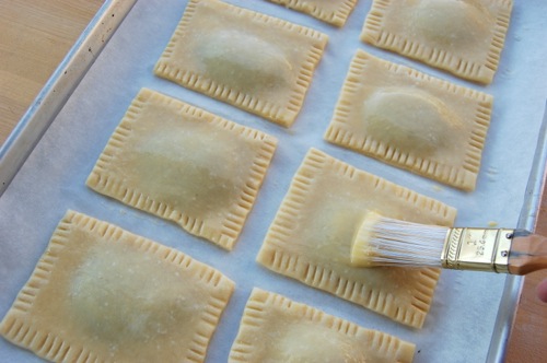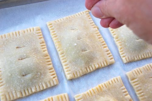 Haven’t heard about Pop-Tarts before (Kellogg’s haven’t considered exporting them to our corner of Europe, though corn flakes were among first foreign wonders, appearing here in 90ies), but now I wanna try to make them! Do you have any tips and tricks, how to apply the upper sheet of dough? This is the point where I feel danger to put the sheet in wrong place, tear apart or do other fatal mistakes.