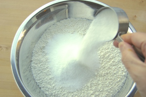 Combine the flour, sugar, salt and yeast in a large bowl.