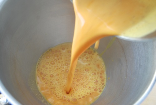When the milk mixture is blood warm, pour it into a stand mixer.
