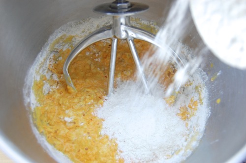 Stir it together and start adding the flour mixture.