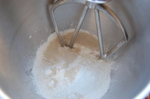 Let me tell you, that dude will be on the rowing machine all afternoon working one of these off. Because under the hood a savarin is an indulgence machine: a buttery brioche loop soaked in aromatic syrup and filled with Chantilly cream. The fruit? It’s sort of like the glow-in-the-dark lure of an anglerfish, enticing the dieter to his doom. Begin by assembling all your ingredients. Start with the dough. Put the dry ingredients in your mixer.