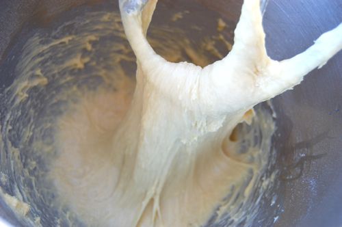 In the end you’ll have a very rich and stretchy dough. Let it sit for a minimum of 15 minutes. Or, for maximum flavor, cover it with plastic wrap and let it rise until it’s doubled, about 45 minutes. At that point punch it down and put it in the refrigerator overnight or for up to 3 days. The more time, the more complex the flavor.