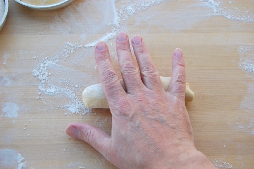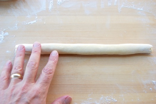 …and roll until the dough is about ten inches long. I try to make it as even as I can…