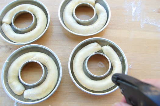Next I spritz them with water to keep the tops moist as they rise. Egg wash can be used here, but a shiny, sealed top (which will actually be the bottom in the end) will tend to prevent syrup from penetrating when I get to that step. Oh, did I mention you need to preheat your oven to 375 degrees Fahrenheit about now?