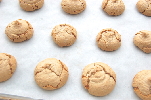 Bake them about 15 minutes until they’re a light brown, then turn off the oven, prop the door open an inch or so with the hand of a wooden spoon. Half an hour later you’ve got yourself some amaretti.