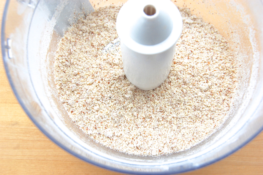Process them for about 45 seconds until they’re a meal-like consistency. Once the mixture starts creeping up the sides of the bowl you know they’re about as fine as they’re going to get.
