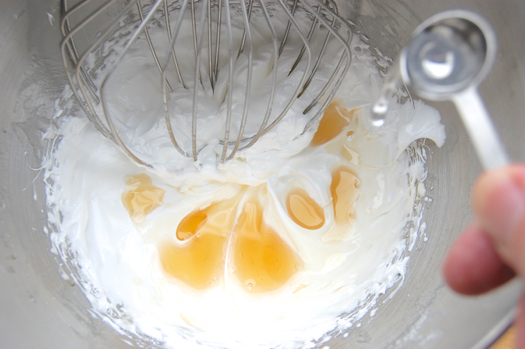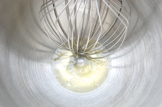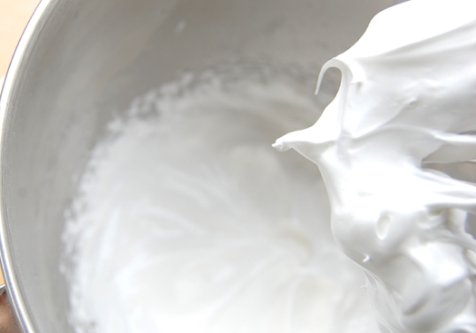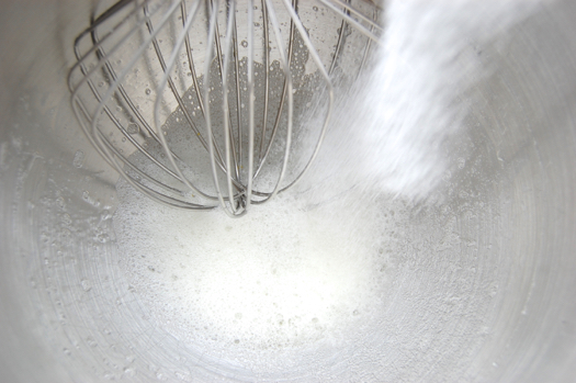 Whip the whites until they’re foamy. Then add the sugar in a steady stream.