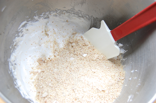 When the meringue is finished, whip in the amaretto and almond extract.