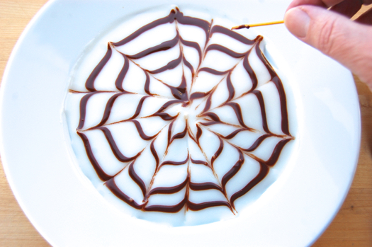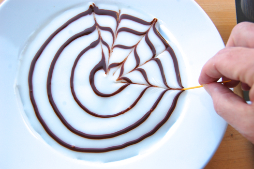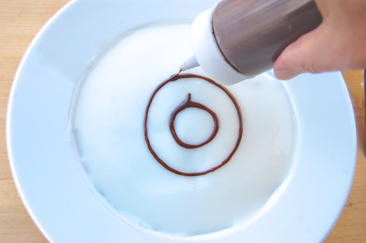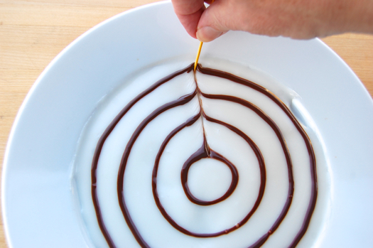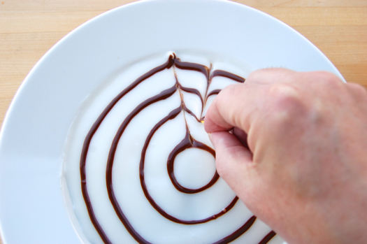 Chocolate poured fondant is most commonly used for decorating Napoleons and petits fours. It’s a snap to make, but pictures always help. So here goes. Just melt some poured fondant in a small pan: