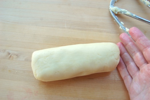 The truth is that sometimes I just don’t have time to go for the gold and make my own marzipan from scratch (i.e. from almonds). However there’s still value in doing it yourself, even if your base ingredient is store-bought almond paste. It just tastes better. All you need to do is combine an 8-ounce can of almond paste with 7 ounces (1 3/4 cups) of powdered sugar in the bowl of a stand mixer fitted with the paddle.